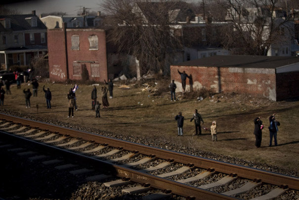 Quarante ans plus tard, Nina Berman fait un clin d’œil à Fusco, lorsqu’elle se retrouve dans le TGV qui mène Obama à la Maison Blanche. Un train qui dérive à toute allure, et ne laisse que quelques millisecondes aux partisans du nouveau président pour le saluer. Leur seule présence révèle le côté patriotique de ce pays, qui croit encore en son destin.