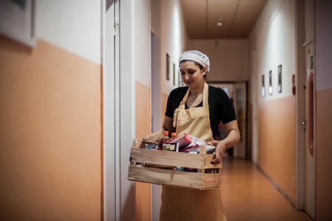 Marina, d’origine Rom, suit des cours de cuisine et réalise des services en tant que traiteur pour des événements externes à la prison. Avec l’aide du chef cuisinier Stefano Isella, les détenues exécutent des commandes provenant de clients publics ou privés.